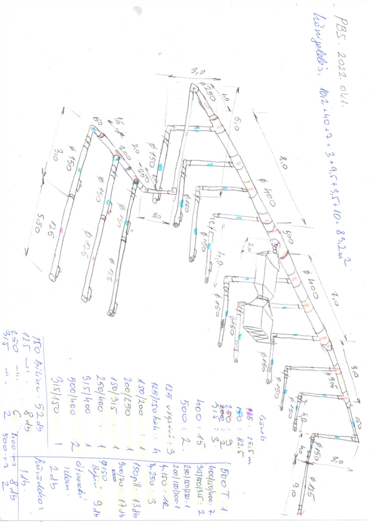 A csőrendszer egyedi tervezéssel és gyártatással történt.
