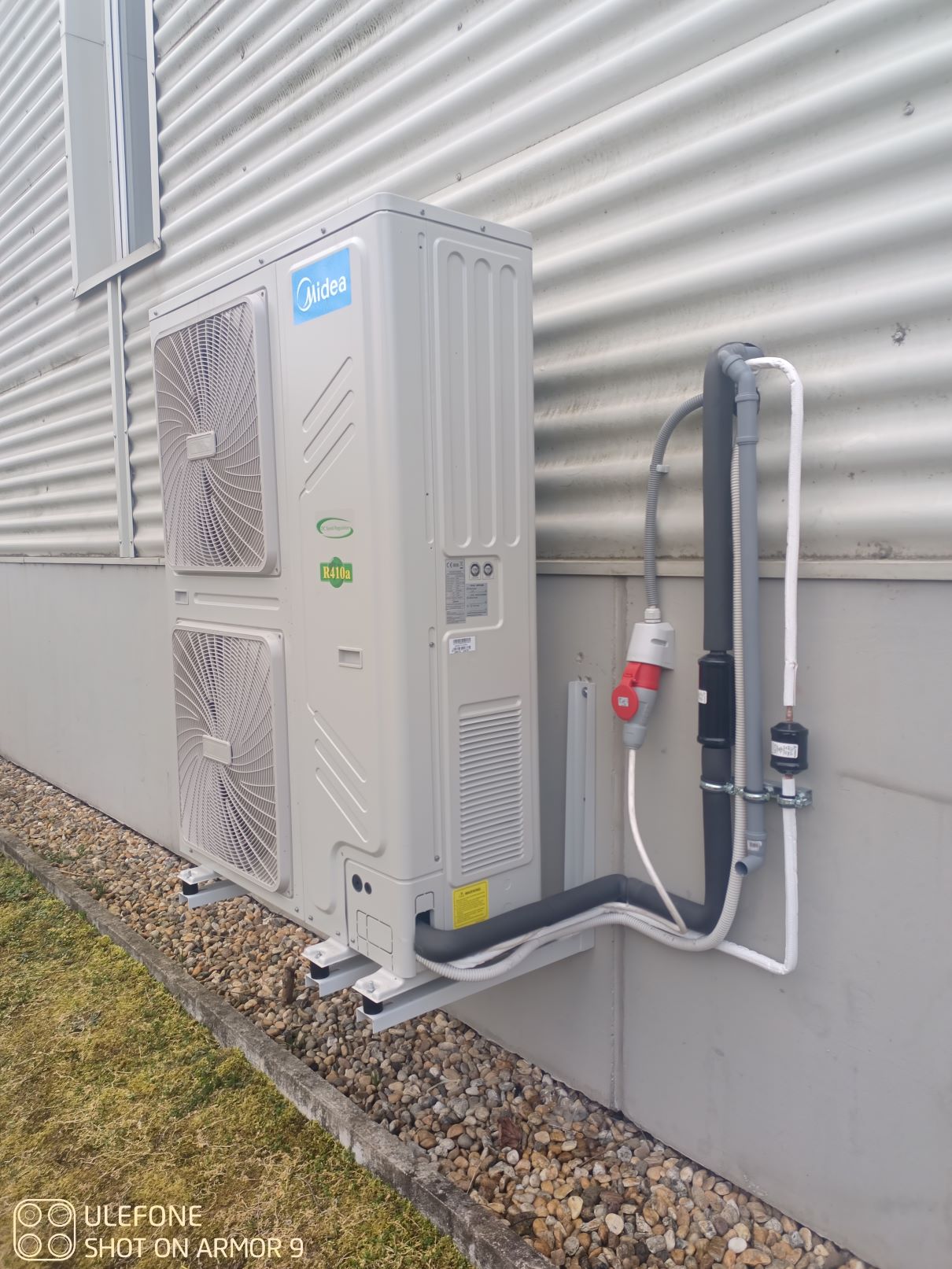 4 db 28 kW-os MIDEA légcsatornás split klíma a hozzávaló légtechnikai elosztó vezetékkel.